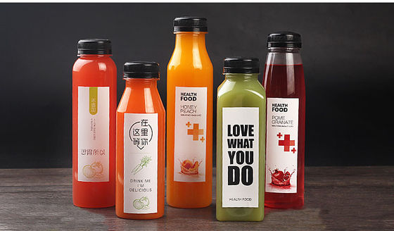 VEILIGHEIDSglb VERBINDINGEN IN VERSHEID: Uitgerust met draai-op veiligheidskappen, verhinderen deze duidelijke plastic sapflessen lastige lekken en het slot in versheid om uw sappen ervoor te zorgen is altijd klaar voor verkoop.