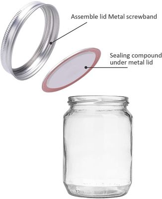 Wordt de Regelmatige Mond van Mason Jar Lids gemaakt van blik, en er is een laag binnen van siliconering en kan vaak worden opnieuw gebruikt. De dikke metaaldeksels, verbinding van het de dekselssilicone van de voedselrang de materiële, BPA-Vrije inblikkende, zijn bestand tegen hoge en lage temperaturen, zijn de inblikkende deksels geschikt voor ijskasten, afwasmachines en magnetronnen.