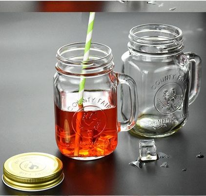 Flessen van Mason Jar Drinking Glass Storage van de provincie de Eerlijke met Handvatten