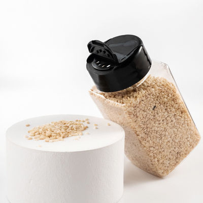 De deksels van deze plastic kruidflessen zijn tikbovenkanten met twee kanten voor het schudden van of het gieten van kruiden.