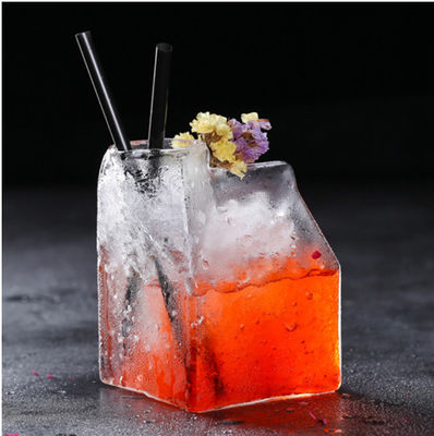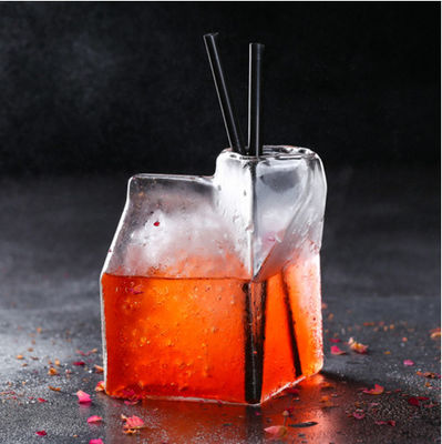 Gemaakt van het borosilicateglas van uitstekende kwaliteit, heeft de vorm van een transparante melkdoos een unieke betekenis van ontwerp. Kan in bar of huis worden gebruikt. Met een capaciteit van 350ml, kan het cocktails, whisky, tequila en diverse types van fruitdranken houden.