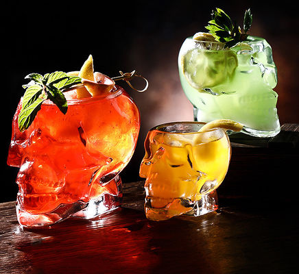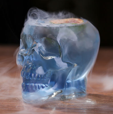Schedelvormige glazen beker